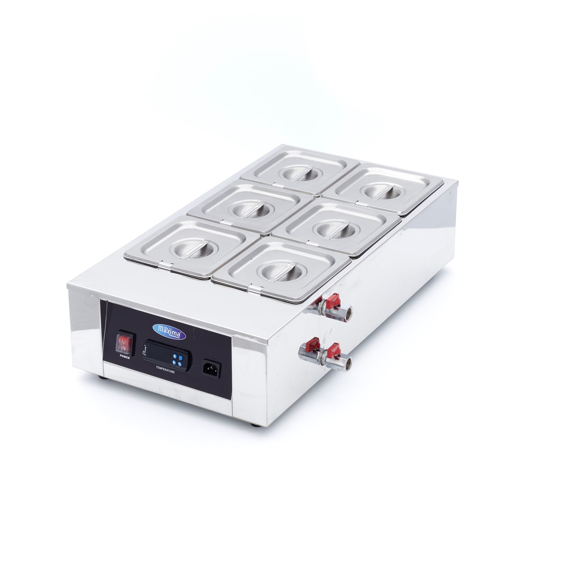 Este elegante fundidor de chocolate facilita la fusión del chocolate. Incluye 6 recipientes GN de 1/6 GN, 10 cm de profundidad y tapas a juego. La pantalla digital muestra claramente la temperatura del agua y de los recipientes GN.