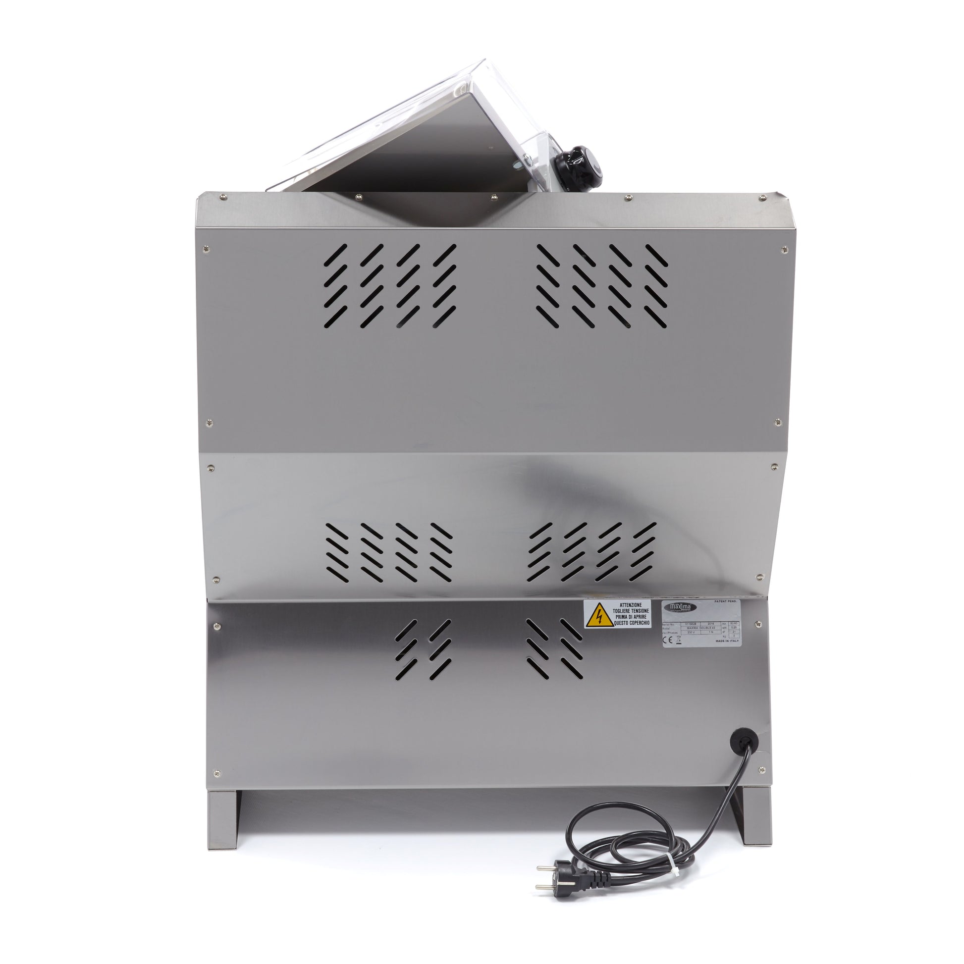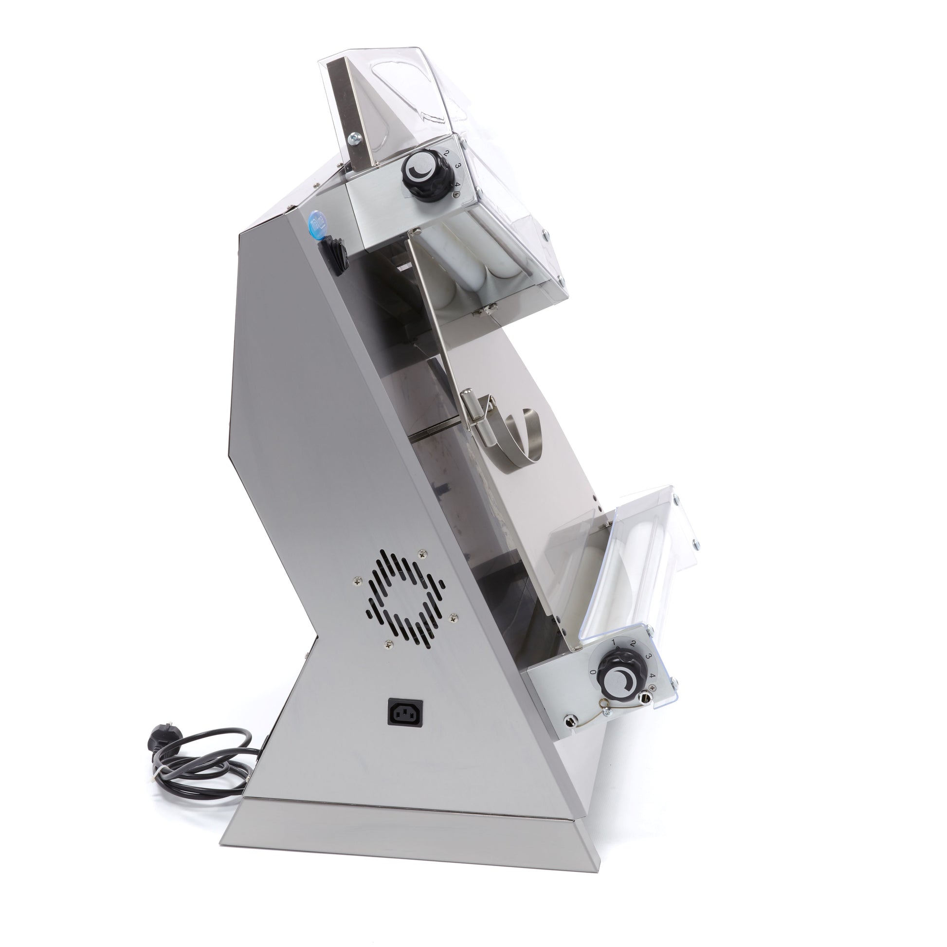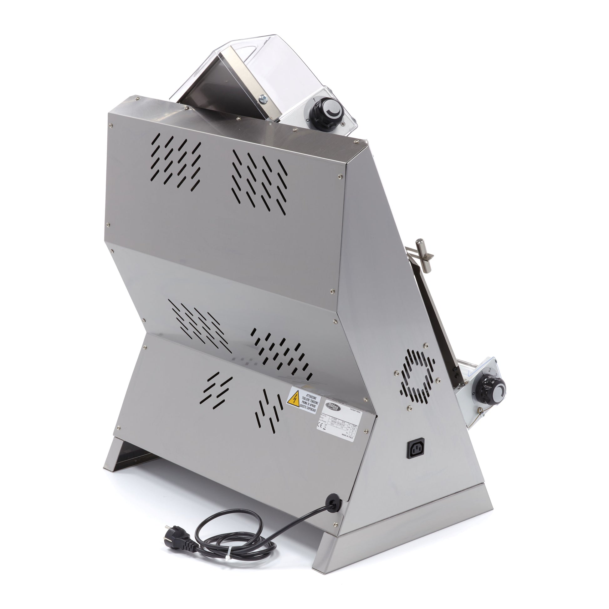 This professional rolling pin has a powerful motor and can easily handle between 210 and 700g of dough. It can be operated at one speed for rolling out beautiful bases. Working safely is important in every kitchen. Therefore, this rolling pin is equipped with a transparent plastic protection cover and a safety switch. Thanks to the two wide stainless steel feet, the device remains stable during use. No water is needed to clean the rolling pin. All the parts can be removed and wiped clean with a dry cloth to avoid flour residue sticking.