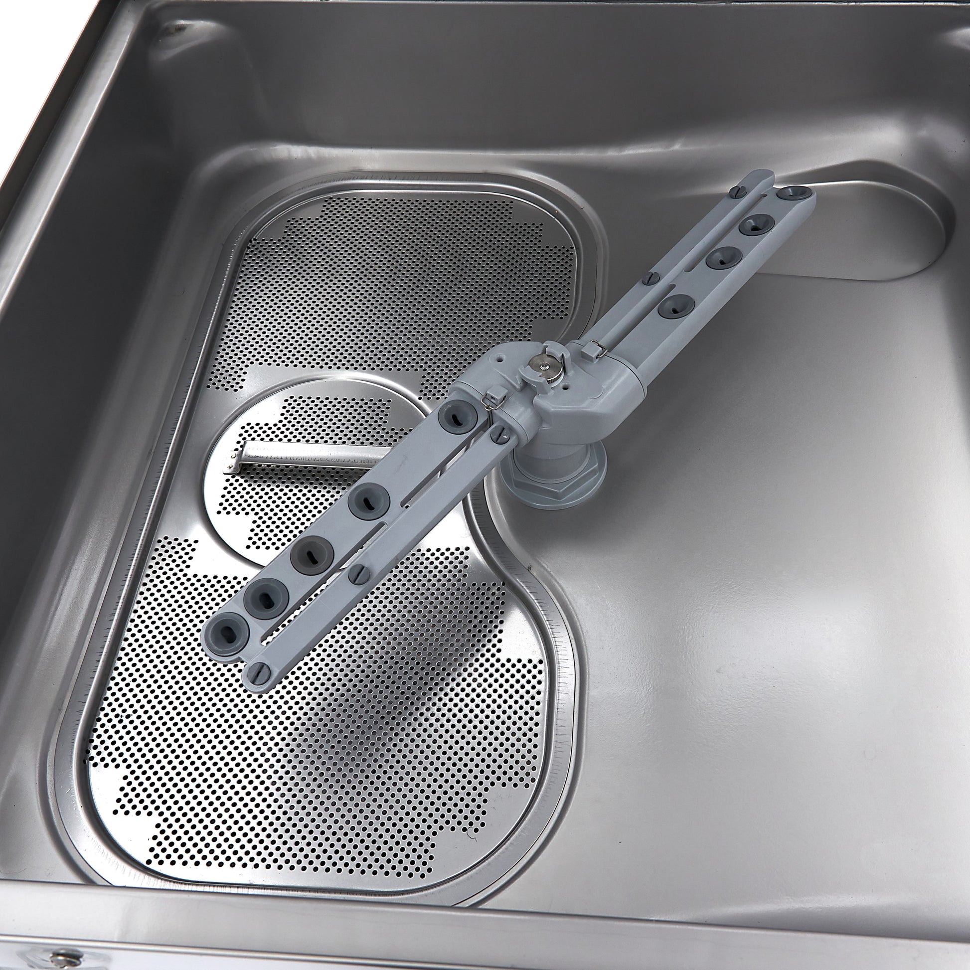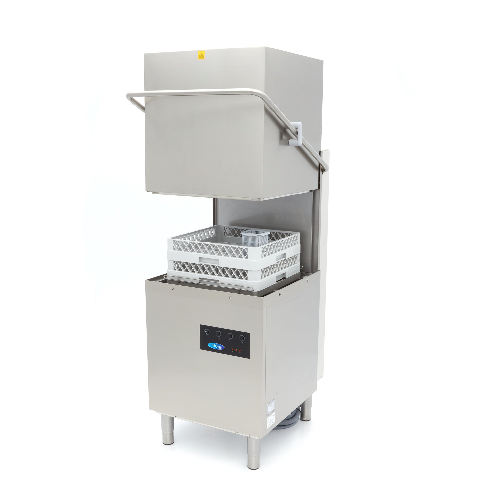 The pass through dishwasher has been made entirely from stainless steel, which makes it very quick and easy to clean. The smooth surfaces can be wiped down with a damp cloth. The wash arms on the inside are made from special ABS and can be cleaned with a cloth and water. The dishwasher is equipped with drain, rinse aid and soap pumps. It is important to note that the rinse aid and soap pumps can only take liquid detergent.