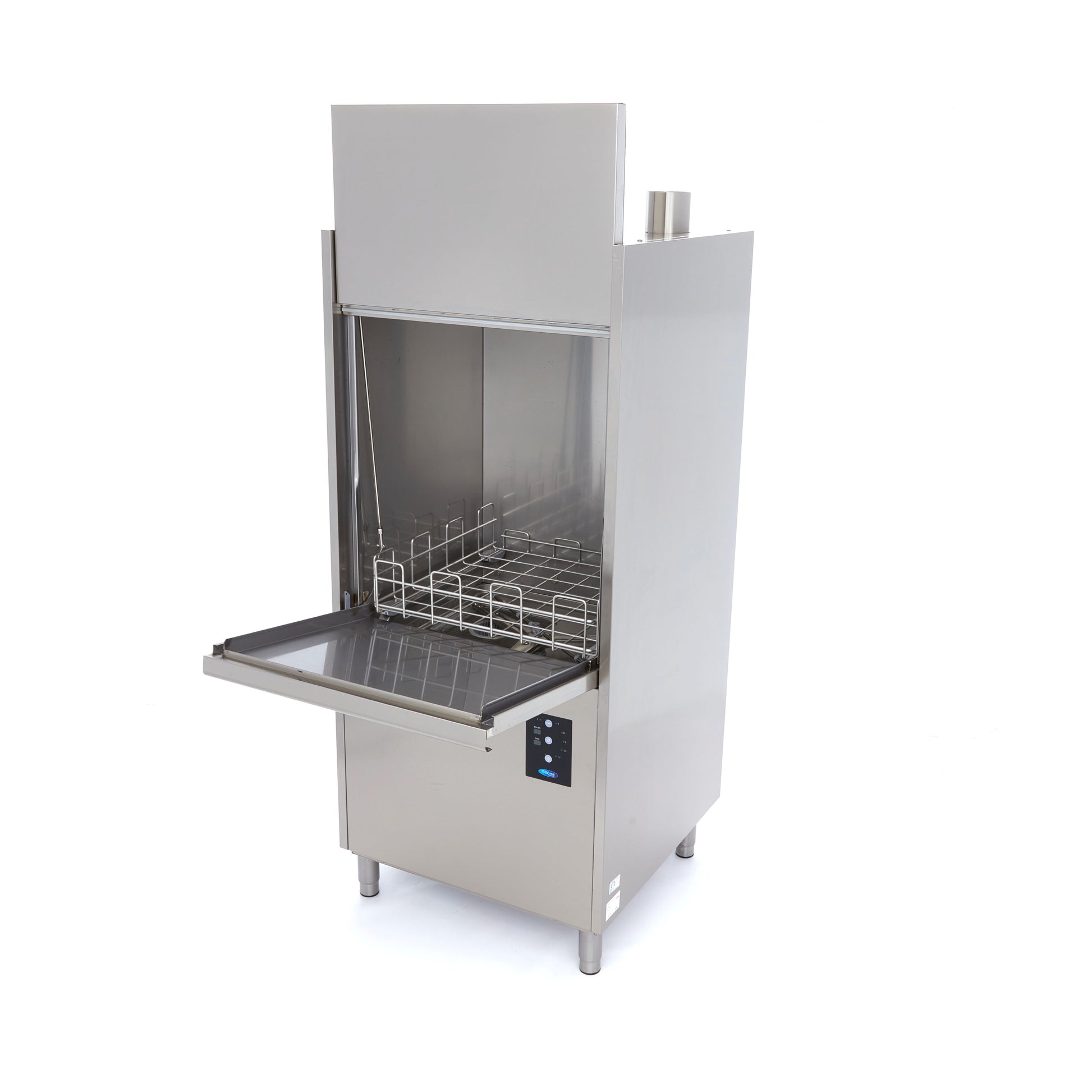 Thanks to the stainless steel casing, this heavy-duty pot washer is easy to clean. Stainless steel is also very durable, so your appliance won't be prone to damage or scratches. The wash arms are made from special ABS and can be cleaned easily with a little soap and warm water. To clean the inside, use a descaler and a special cleaning agent. The pot washer comes without rinse and soap pumps, but special kits can be ordered via the website. No drain pump is included because the water runs off naturally. Simply ensure that the drain hose is connected lower than the outlet.