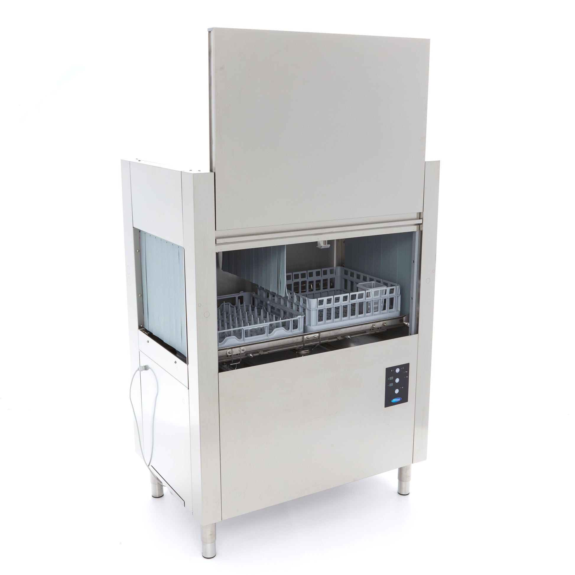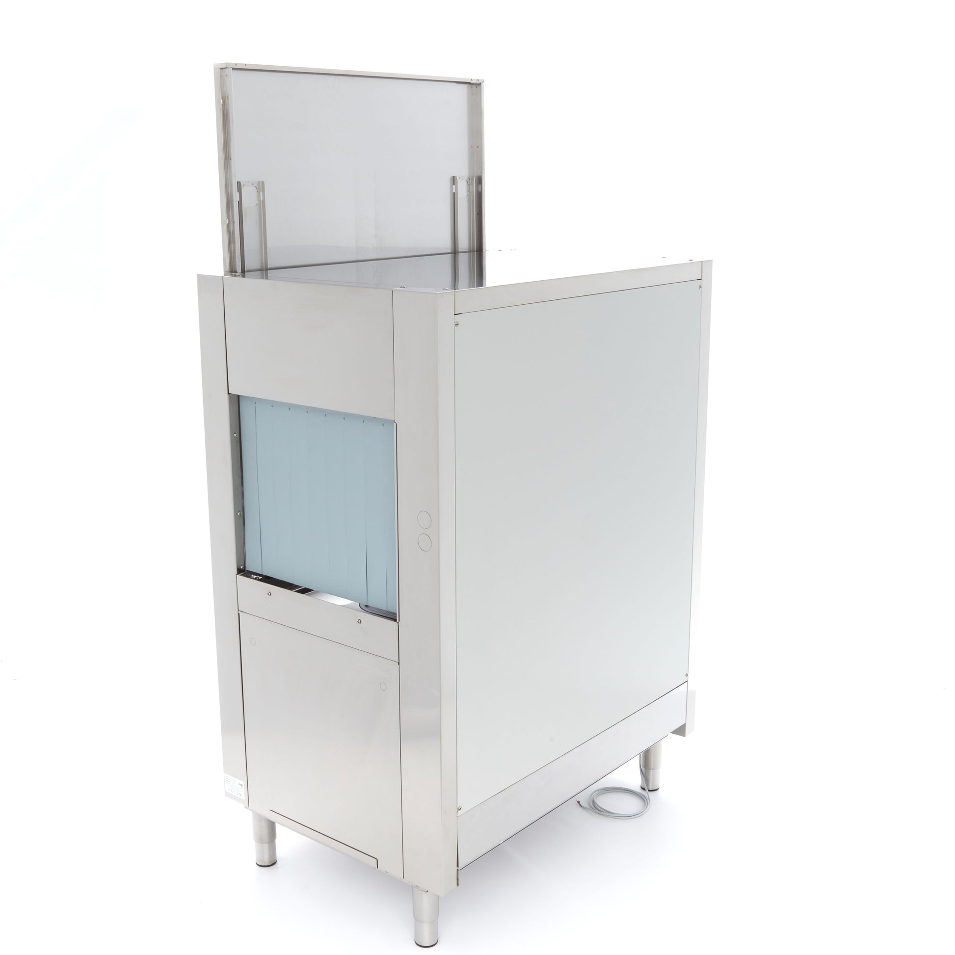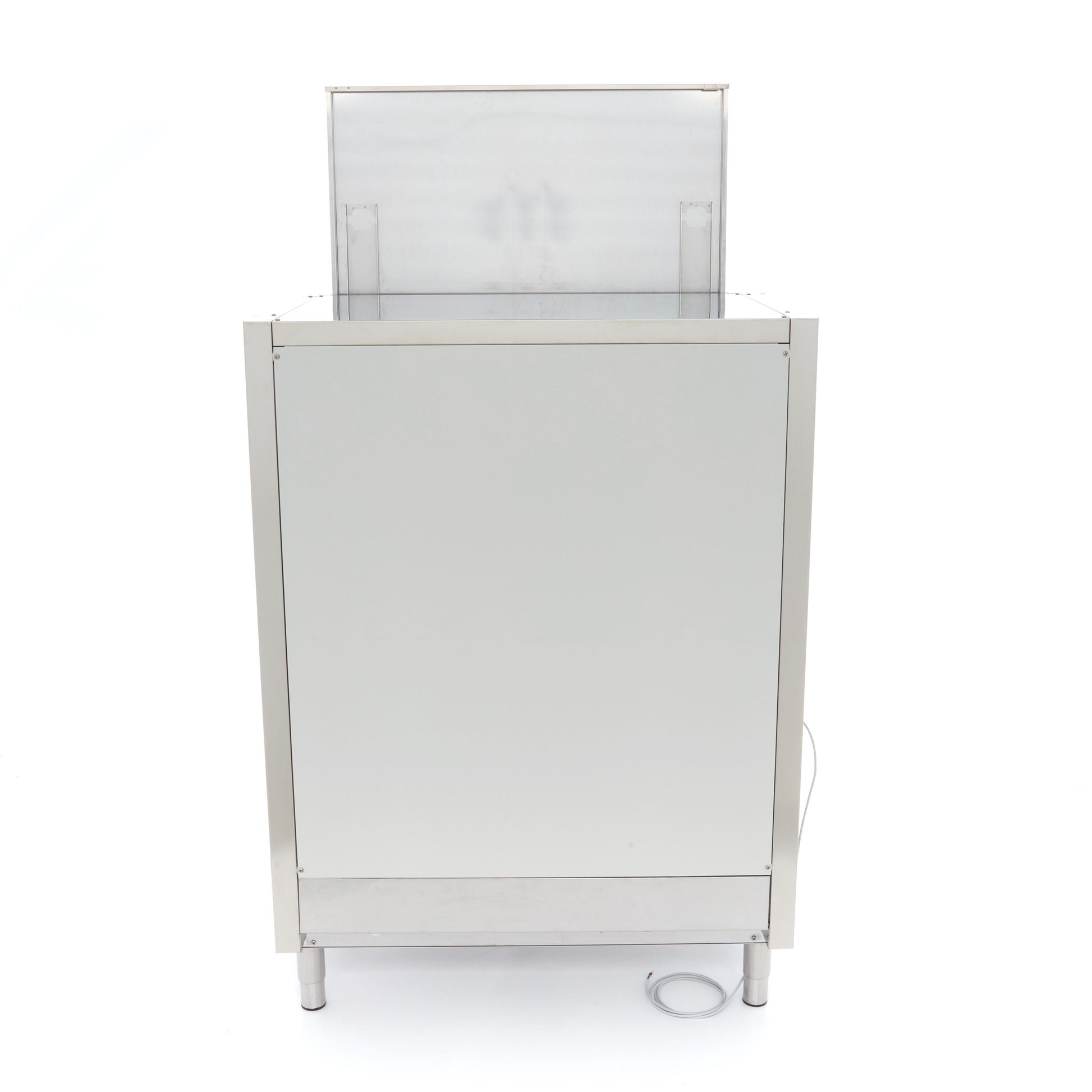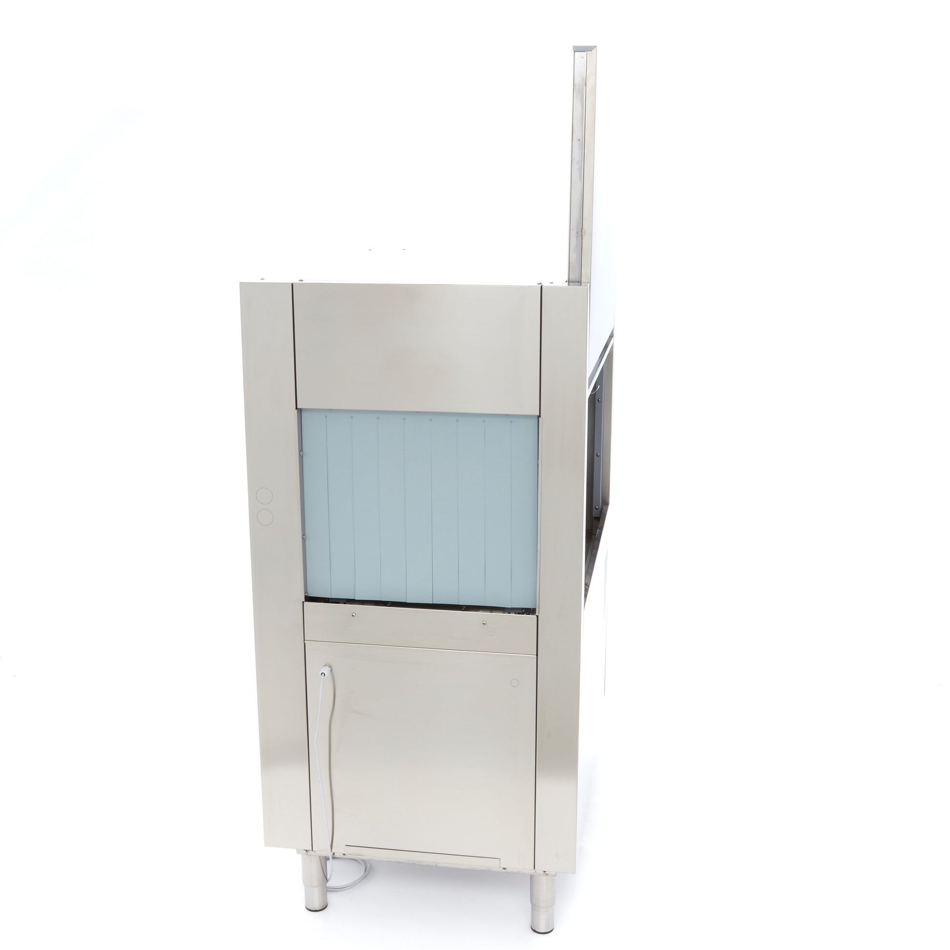 This rack conveyor dishwasher is ideal for cleaning large amounts of dishes, specially during busy times of the day. The racks with dirty dishes slide quickly and easily through the rack conveyor machine for a complete wash that leaves them clean and ready to use again. This commercial dishwasher has the capacity to clean between 60 and 120 racks per hour. It can be extended with a stainless steel table with rollers on the left side of the dishwasher.