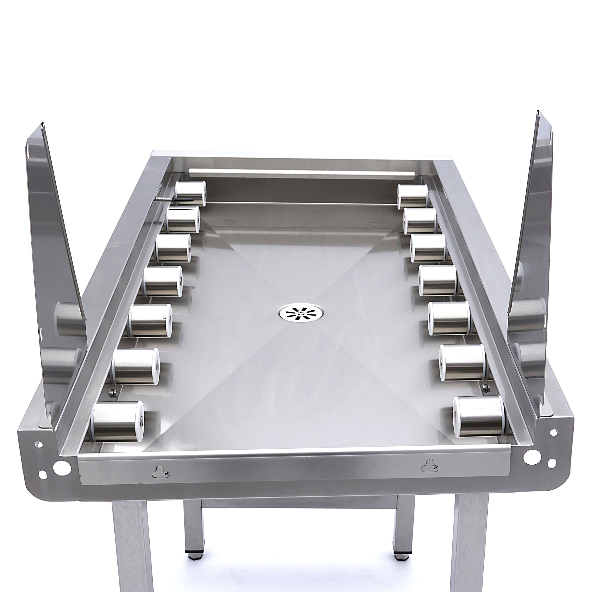 This stainless steel straight roller table is the perfect choice to help commercial kitchens run easily and efficiently. It also makes the cleaning process quick and effortless.
